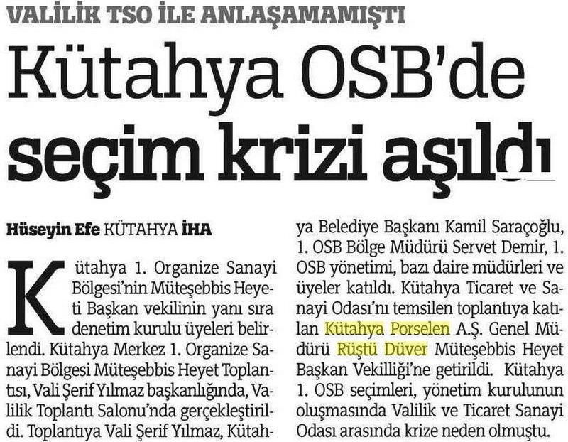 Kütahya Porselen hakkında basında yer alan haberler